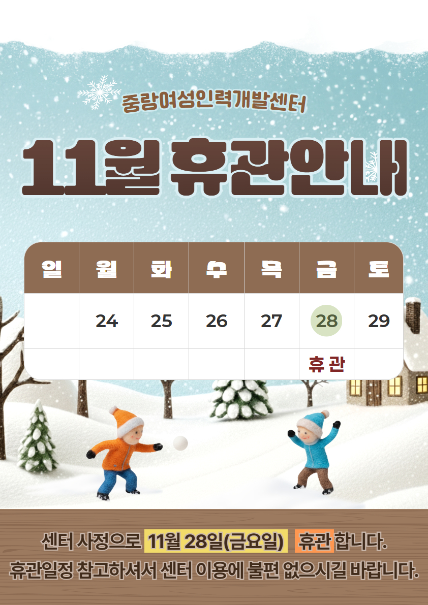 11월 28일(금요일)은 중랑센터의 휴관일입니다.