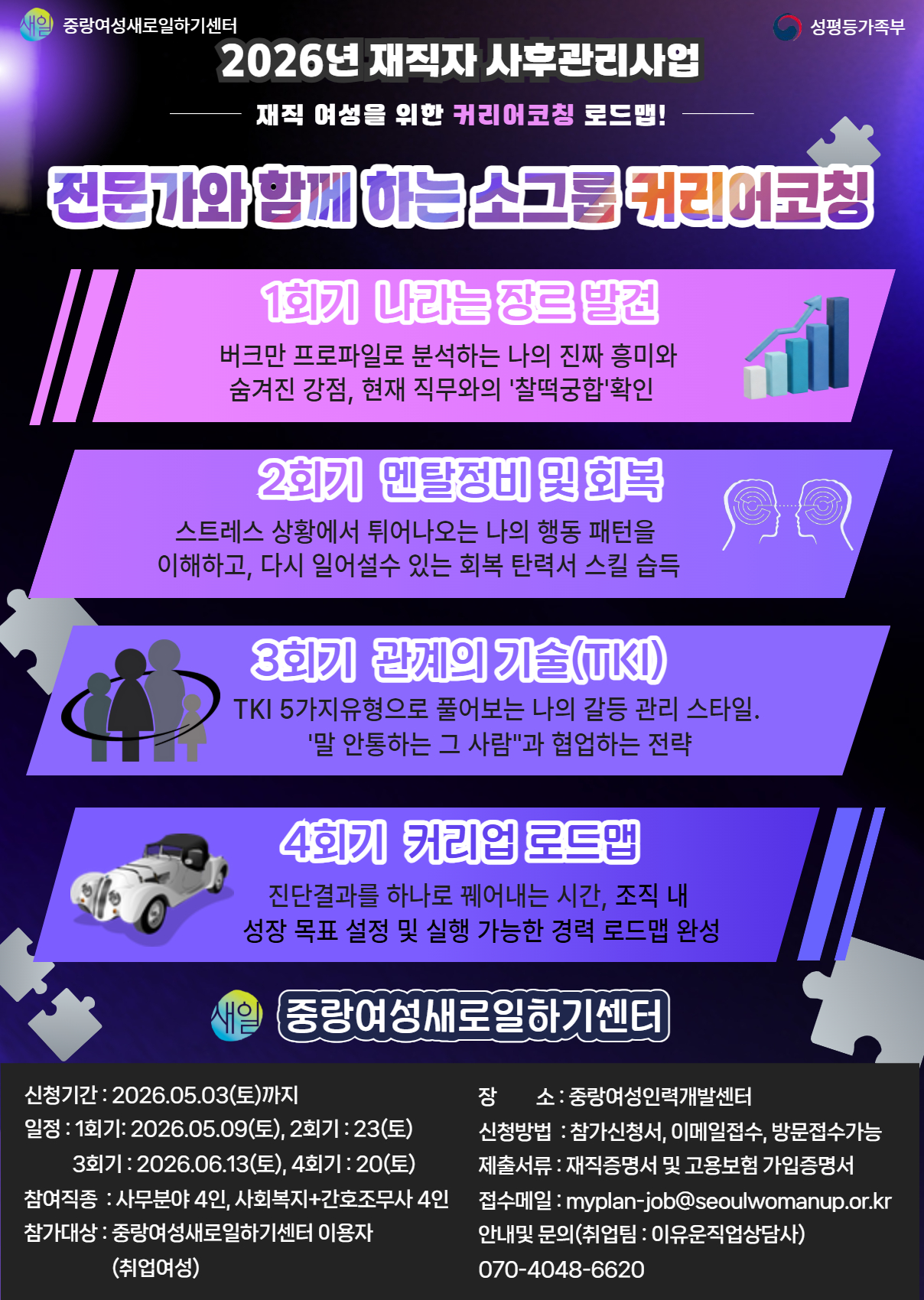★ 참여대상 : 중랑여성인력개발센터 이용 재직여성 8명